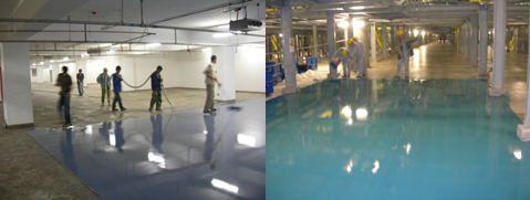 1、                   餐廳水泥自流平效果圖                                                        車間水泥自流平效果圖                        車庫水泥自流平效果圖                                                      車庫水泥自流平效果圖 七、用量 每平米每毫米厚度需1.7公斤。