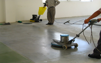 5.撒少量水用500目磨片拋光一遍,將地面的水清掃干凈。