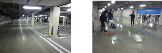 ③ 保持地面浸泡、濕潤,不漏水泥地面,保持4個小時以上;