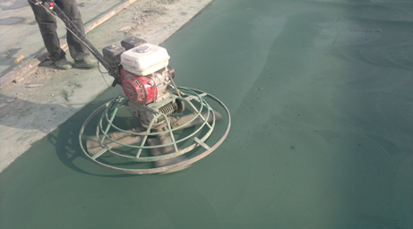 1、表面處理: 使用加裝圓盤的機(jī)械鏝均勻的將混凝土表面的浮漿層破壞掉。